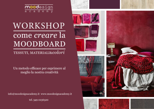 Un metodo efficace per esprimere al meglio la nostra creatività PER ISCRIVERTI IN AULA CLICCA QUI PER IL WEBINAR CONTATTACI COME CREARE LA MOODBOARD: TESSUTI, MATERIALI&COLORI Moodesignacademy è lieta di comunicarvi che Domenica 22 Marzo, riproporrà nella nuova location COWO di Villa Modena in Via Zamboni 24, a Verona, il workshop dal tema Come creare…