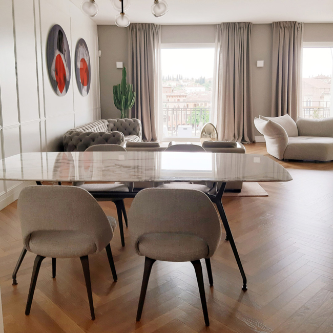 Nella centralissima Verona, cuore borghese della città che si affaccia sull’Adige, scopriamo un progetto rigoroso fatto di luce e geometrie. Un progetto in cui si fonde minimalismo di respiro borghese, classicità reinterpretata, ed una strategia legata alla sartorialità artigiana di fornitori locali che hanno realizzano custom made gli elementi caratterizzanti il progetto dove il…