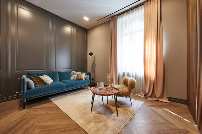 Le suite è nata come esigenza per accogliere ospiti o dirigenti della società di Rossetto di Padova, per cui è stata realizzata la sede a Milano. L’ambiente evoca uno spazio elegante e raffinato ma non pretenzioso, grazie al sapiente studio cromatico tra texture vibranti, tessuti e materiali. Dal salottino di ingresso, il passo del visitatore…