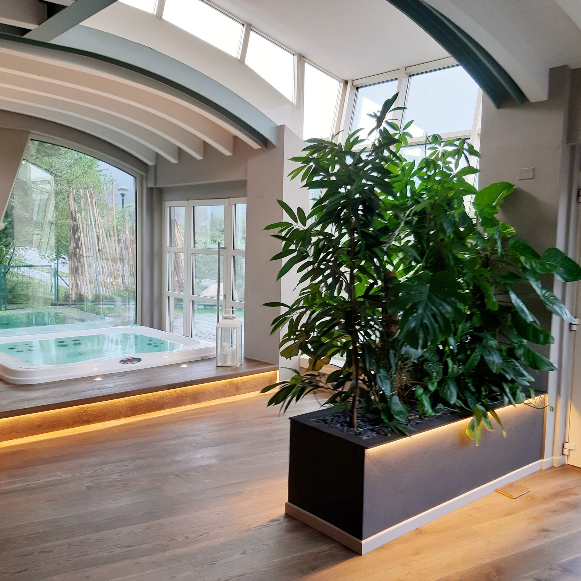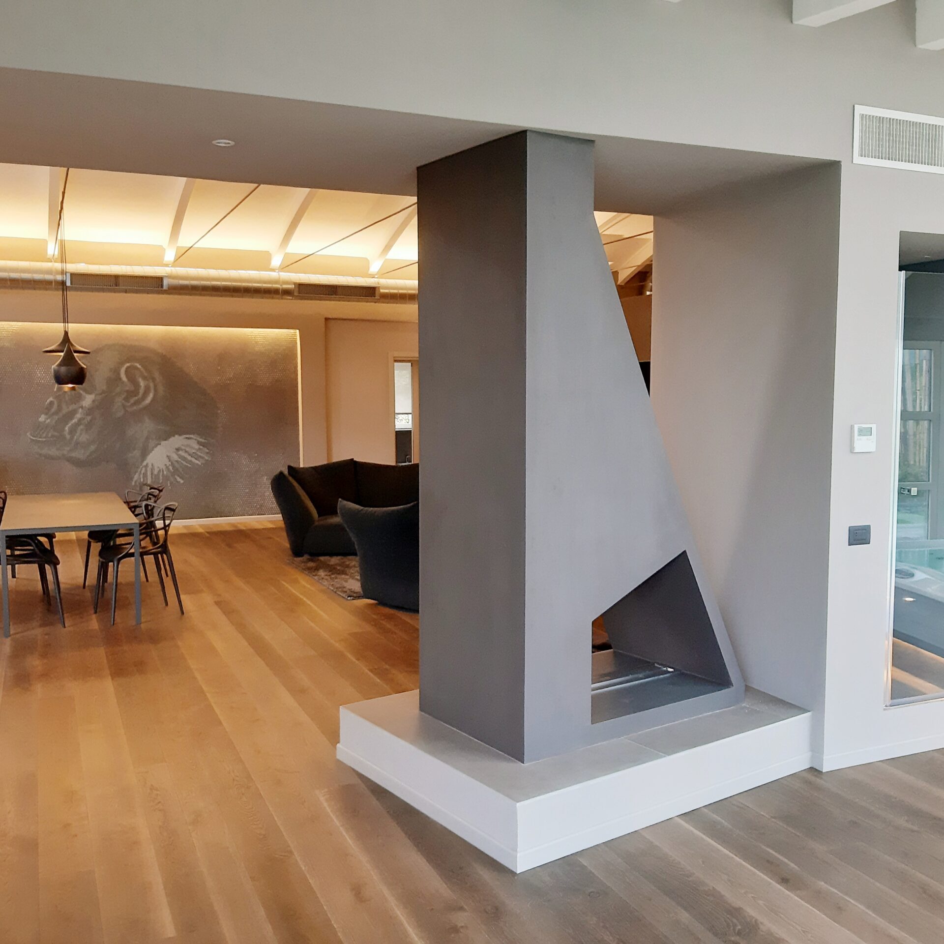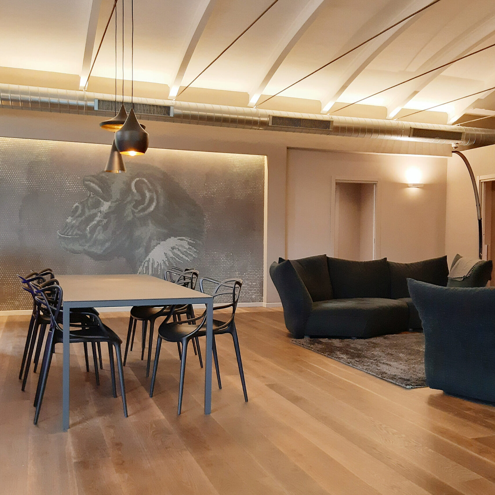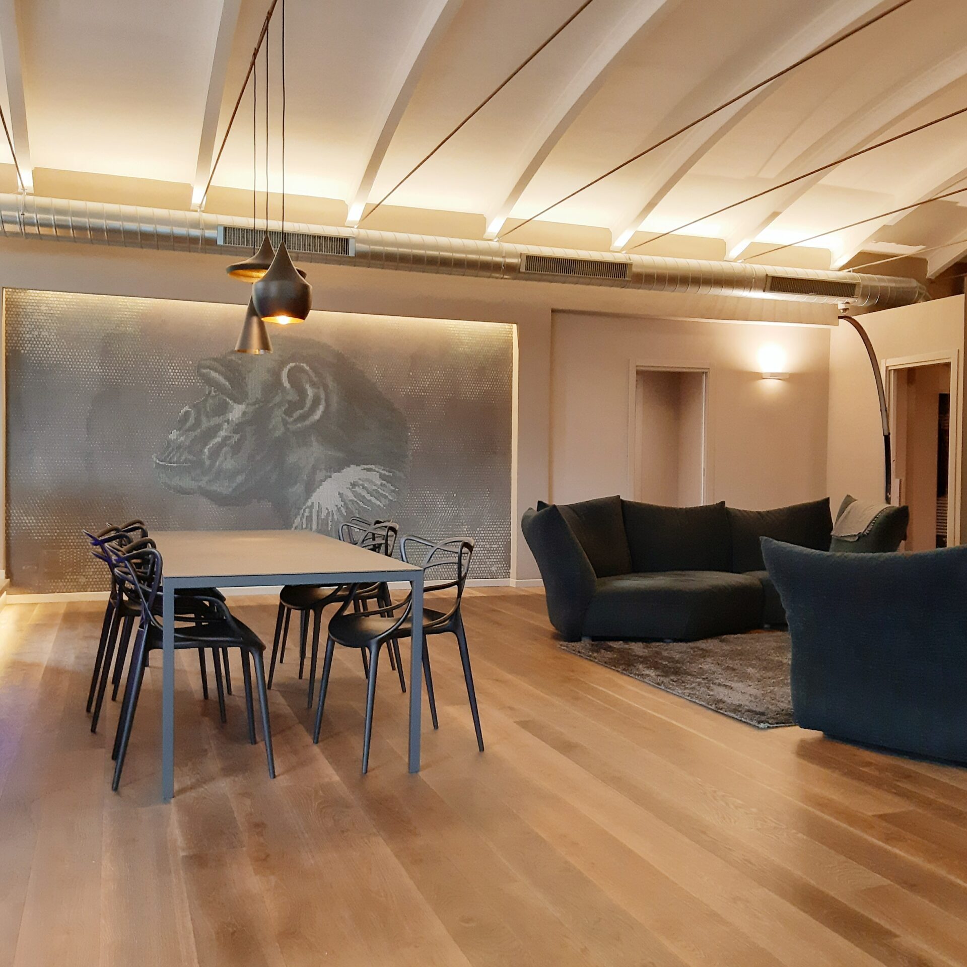 Un intervento realizzato a quattro mani tra interior e committente. Ci siamo lasciati coinvolgere dal genius loci e dal mood jungle style alla ricerca del comfort e dell’equilibrio. Ci sono voluti pochi mesi ed un cliente disponibile ad abbracciare scelte non convenzionali e stereotipate per realizzare questa abitazione che si sviluppa su di un unico livello e che ha ospitato in passato un magazzino di fiori. Le istruzioni erano precise: una casa che accogliesse una area wellness, la presenza di un grande acquario che ospitasse pesci tropicali e molto verde in memoria del sapore del luogo nel passato.